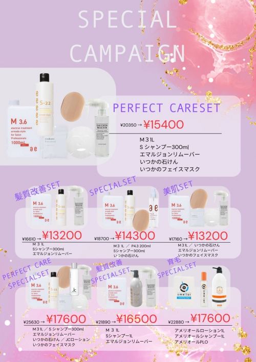 大人気のアルマダスタイルM3.6やSシャンプー・Aujua・アリミノ・グローバルミルボン・ドライヤーなどの器具類も