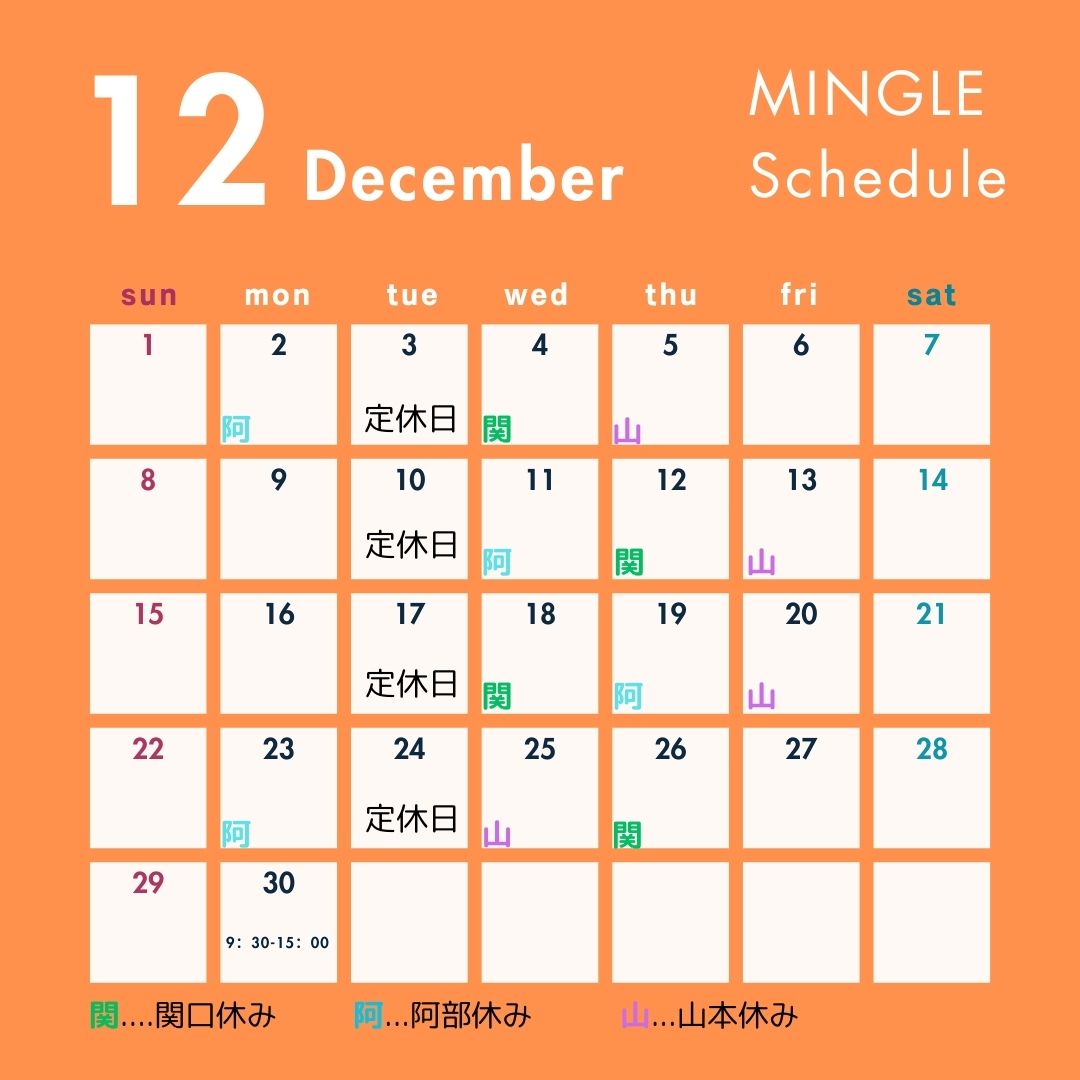 12月のスケジュールご確認ください★
