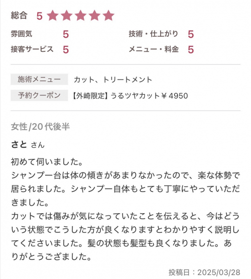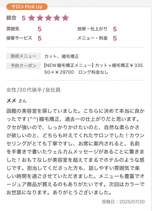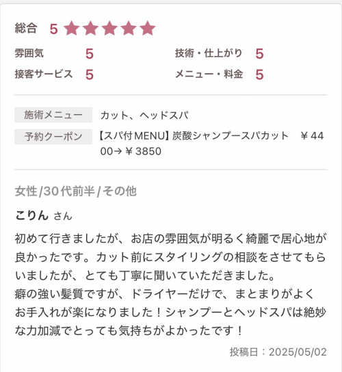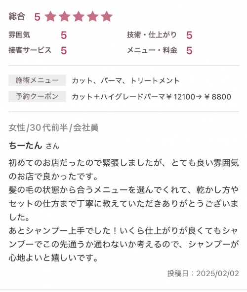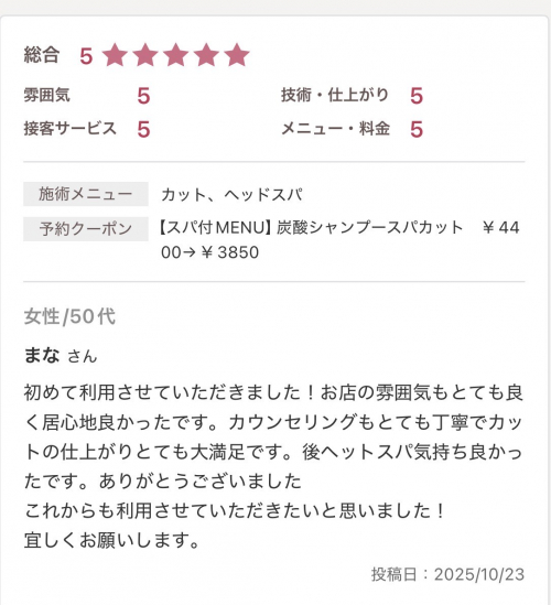 ご来店いただいた上にお時間をとり、口コミまで投稿していただけるなんて・・・